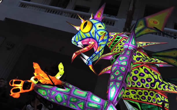 Durante el mes de agosto y septiembre durante todos los miércoles se presentan estos ‘monstruos’ iluminados que dan un espectáculo visual que deleita tu pupila con sus vibrantes colores.