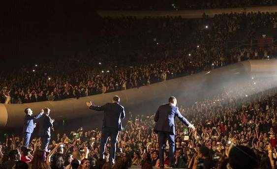 Por la noche, la boyband apareció con trajes azules y camisas blancas para arrancar su concierto en el Auditorio Nacional, donde recibieron y estuvieron deleitando a 10 mil fans.