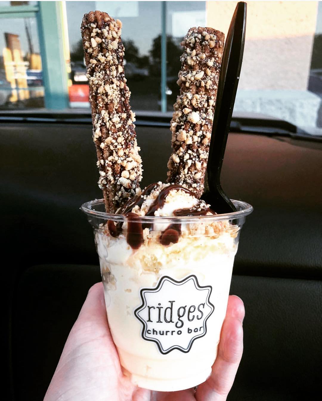 En este lugar venden vasos llenos de helado de diferentes sabores -incluso hay de pay de manzana-, y para darle el toque perfecto agregan un churro bañado de azúcar, chocolate, nuez, cereal o chispitas de colores.
