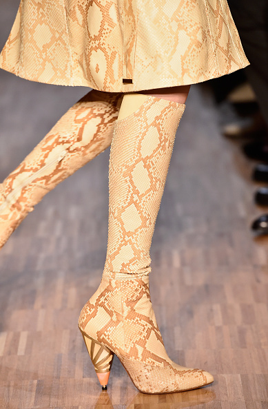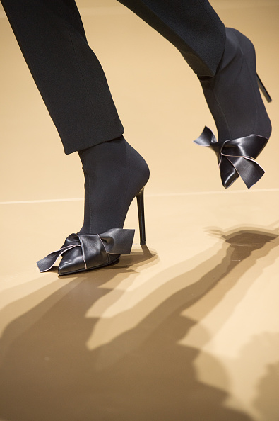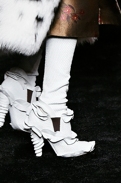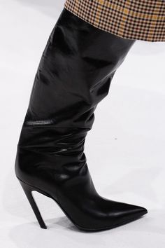 Givenchy: algo revolucionario de la casa francesa es crearon una bota alta como si estuviera compuesta de un stiletto y con otro tipo de material se hace un gran calentador que forra la pierna para formar este zapato.
