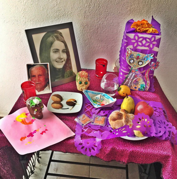 Por su parte, Geraldine Bazán y Gabriel Soto hicieron dos ofrendas para recordar, sobre todo, a la abuela Elisa, una de ellas está localizada en el patio y cuenta con dos niveles, mientras que Gabriel hizo una más pequeña recordaron a su madre y abuelo.