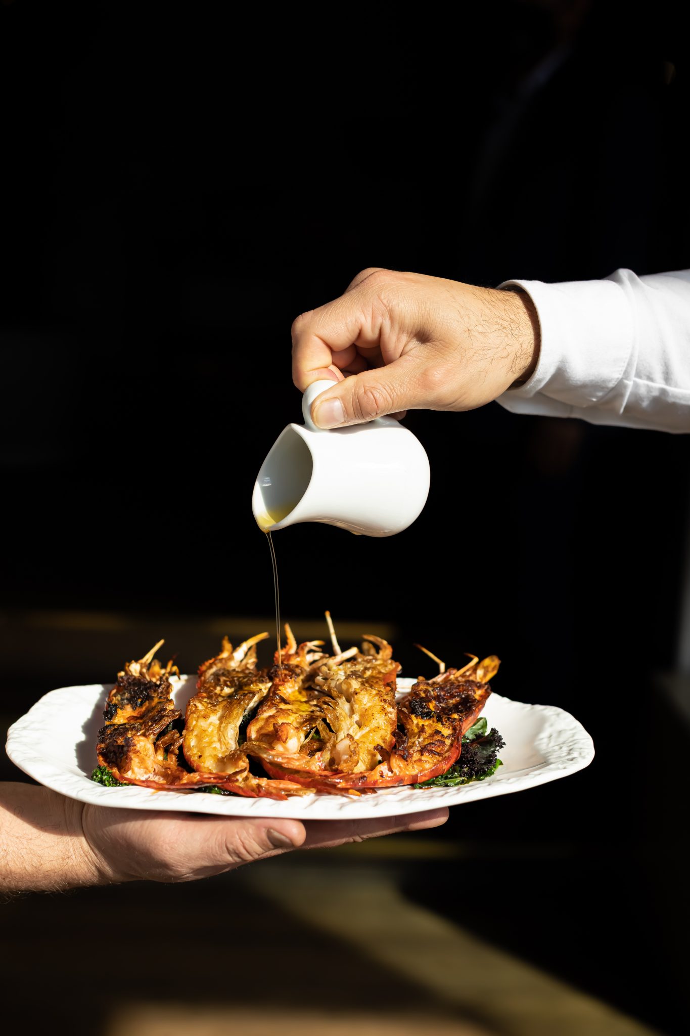 Aquí se comen ostiones, ceviches, aguachiles, salmón, tártara de atún, arroz con pescado y mariscos, tacos de pulpo, de langosta y otros pescados en diversas preparaciones, con salsa de langostinos a la veracruzana, a las brasas, con barigoule de alcachofa.