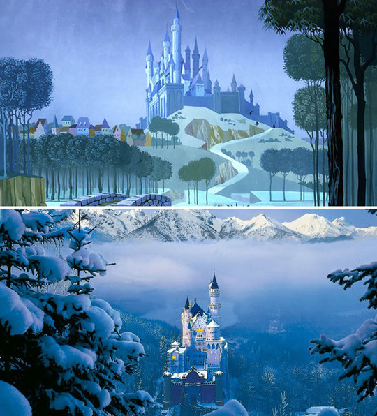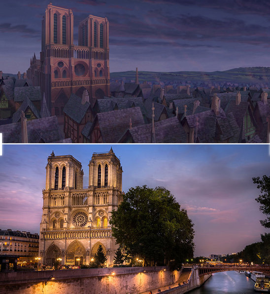 Disney ha utilizado famosas locaciones como Notre Dame, el Big Ben, la ruta 66, la muralla china o la Ópera de Sídney, y otras veces se ha inspirado de diversos castillos o paisajes de la vida real para plasmarlo en nuestras películas favoritas.