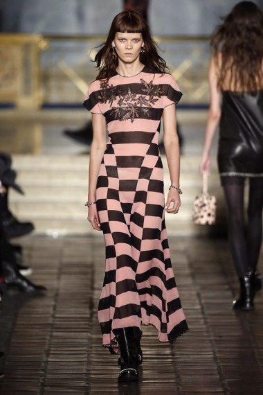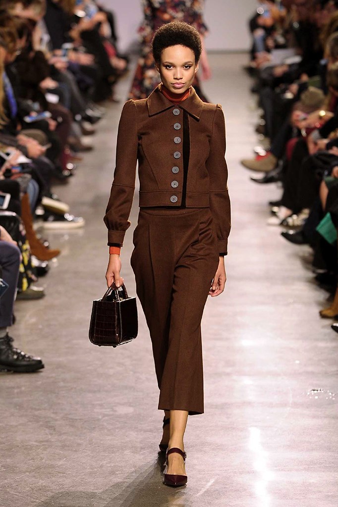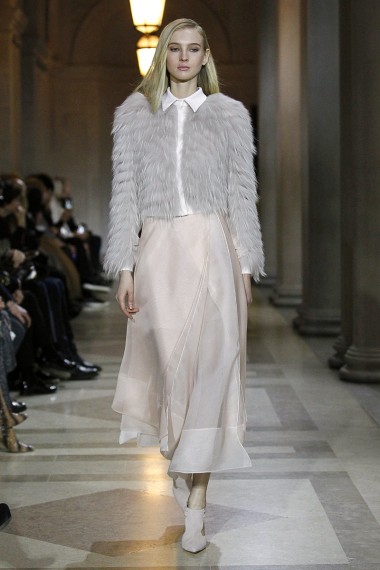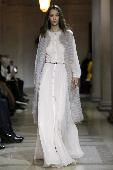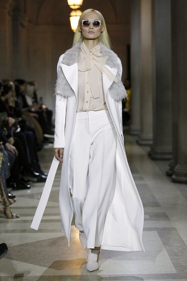 La colección de Carolina Herrera, como siempre fiel a su firma, es de lo más elegante, formal y femenino. Sus suaves texturas, colores claros y un tanto neutros, cortes largos y abrigos con movimiento dan toda la ternura que una mujer necesita en su outfit.