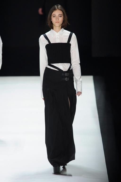 Vera Wang se quedó en lo más clásico, minimalista, retro futurista y simple; la combinación que nunca falla: blanco y negro. Su pasarela estuvo repleta de estos colores, además de cortes asimétricos y transparencias con aperturas.