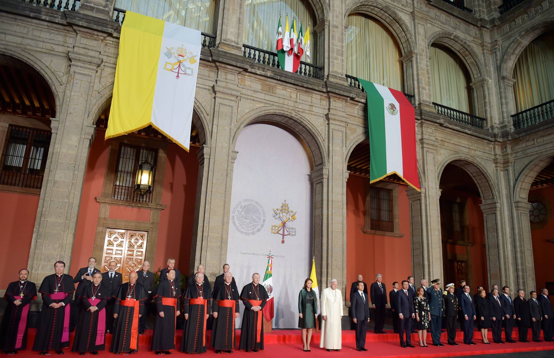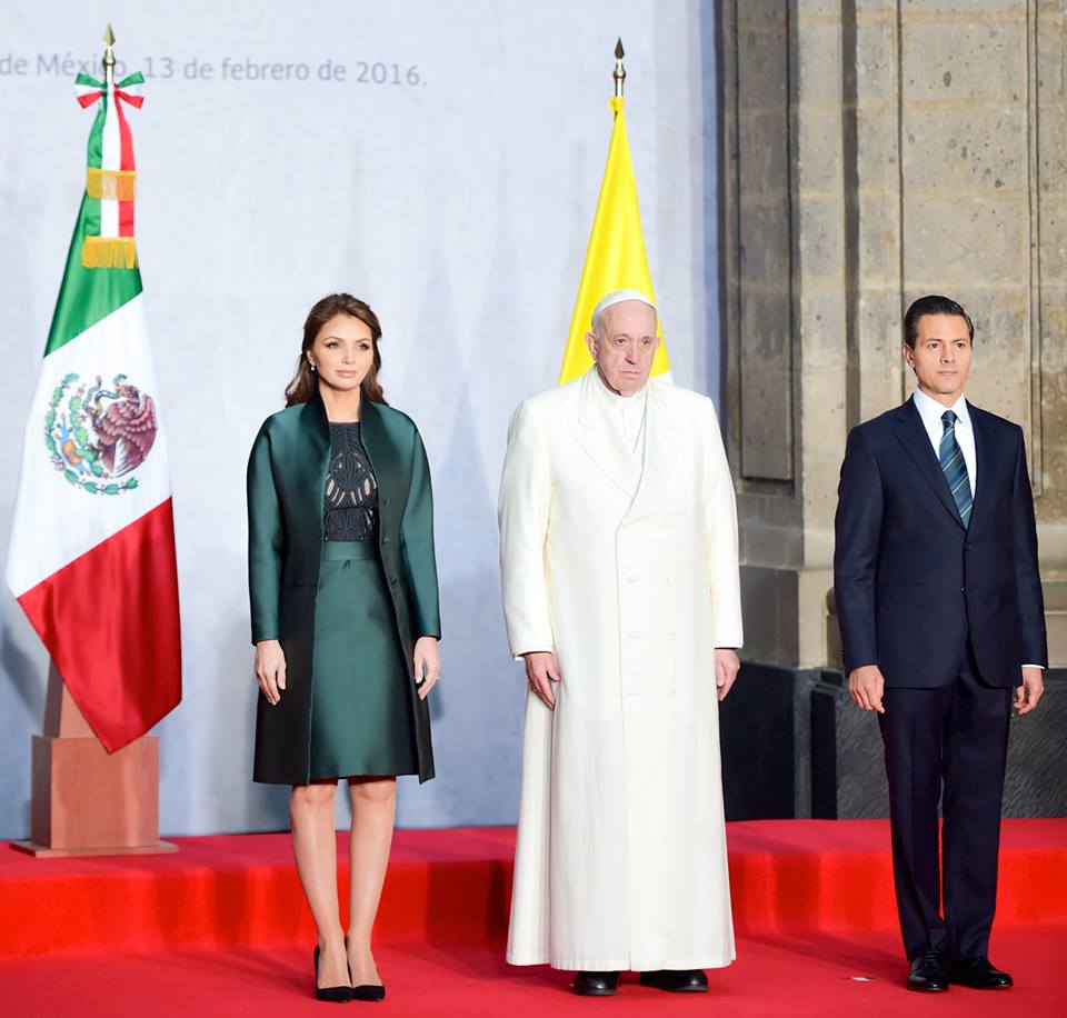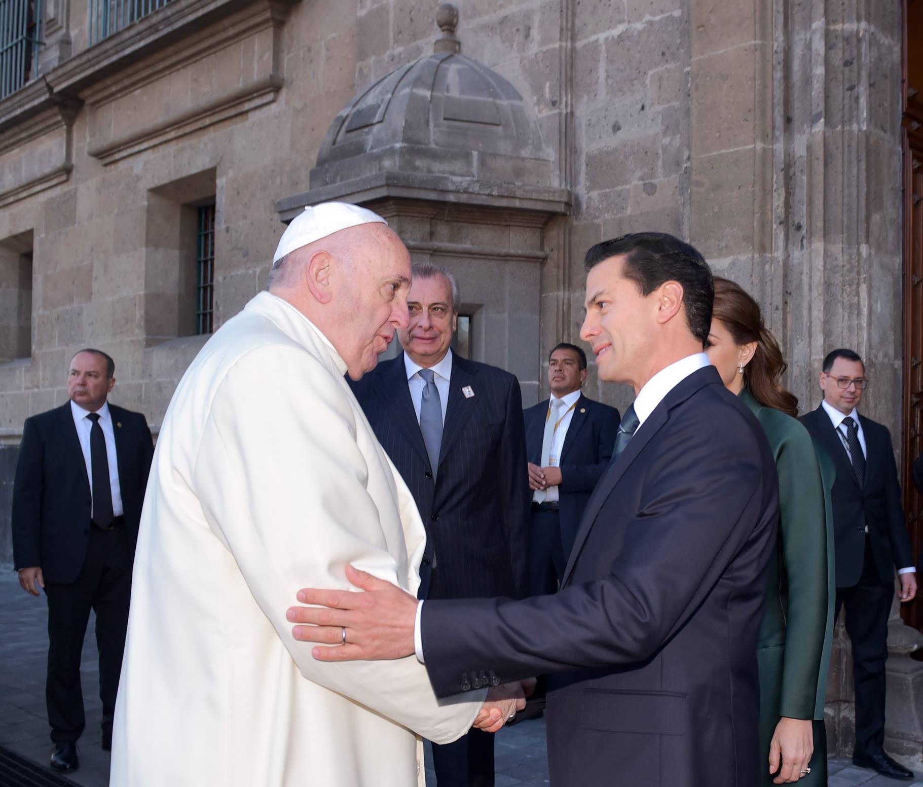 El sábado 13 de febrero, cerca de las 9:30 horas, el presidente de México, Enrique Peña Nieto junto con su esposa Angélica Rivera, recibieron al papa Francisco en Palacio Nacional.
