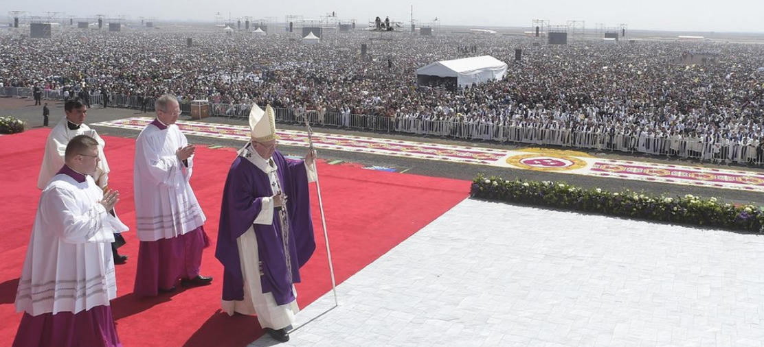 El papa ofreció una misa multitudinaria en el Centro de Estudios Superiores en Ecatepec, ante miles de personas que pernoctaron en el lugar.