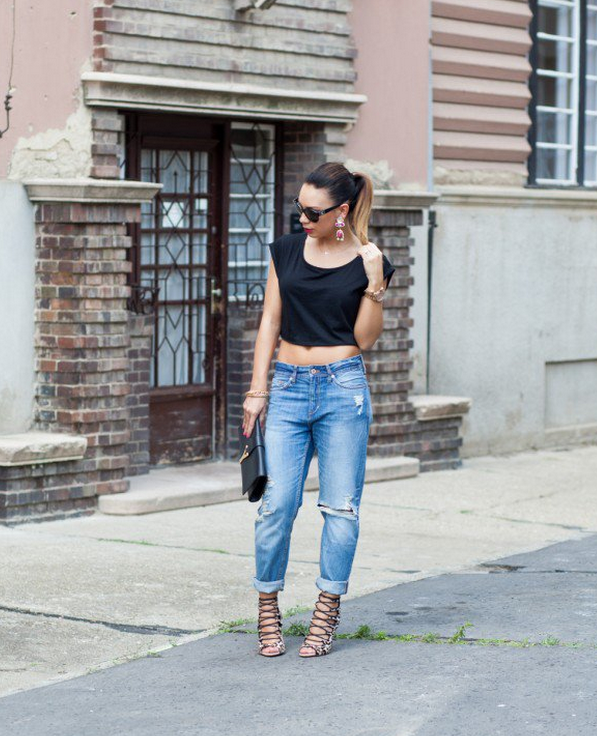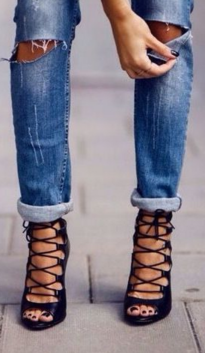 Los capri jeans o jeans lucen perfectos con estos lace-up heels, ya que brindan un look muy trendy y casual sin dejar a un lado la parte sensual de la feminidad.