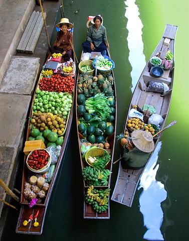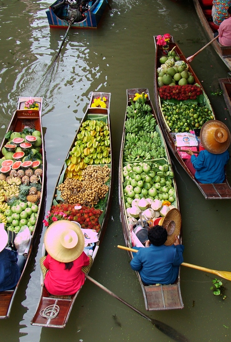 Los mercados surgieron gracias a los hermosos y largos canales que existen en Tailandia, así que se ingeniaron para viajar con los alimentos hacía todos lados de la ciudad y así comenzó esta forma de comercio.