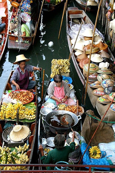 En la capital de Tailandia, Bangkok, se encuentran cuatro mercados característicos del país: flotantes; los cuales tienen por nombre Taling Chan, Bang Ku Wiang, Tha Kha y claro el Damnoen Saduak.