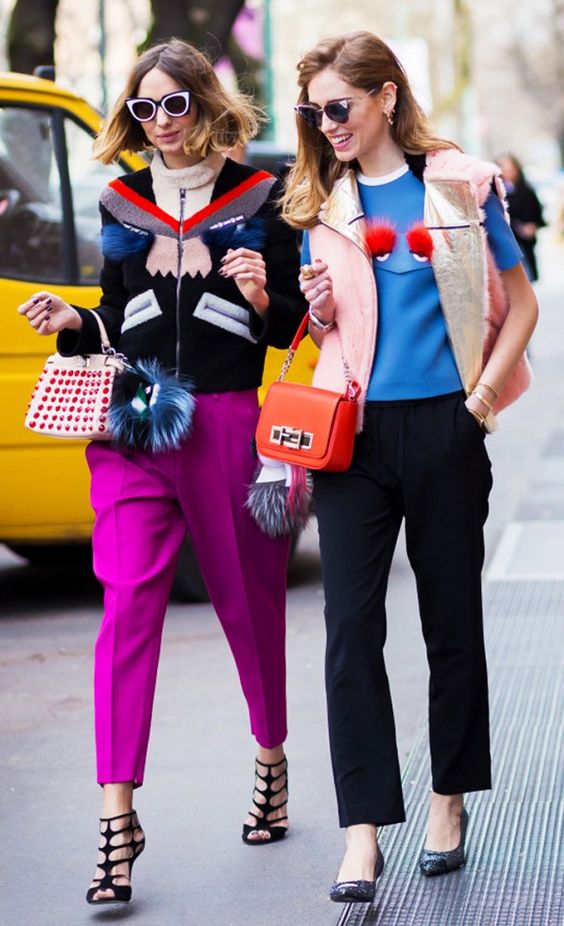 Y si tu estilo es más sobrio y reservado puedes utilizar un outfit con colores oscuros, solamente agrégale una bolsa colorida, divertida o diferente, para así darle un toque de alegría tu look de lunes.