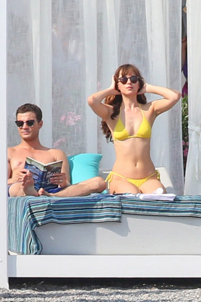 Por si pensabas que esto no se pondría más candente, se ve que en las escenas Dakota tendrá un topless mientras que Jamie le aplica bloqueador solar y platican en los camastros. ¡Morimos por ver la secuela de esta película!