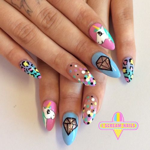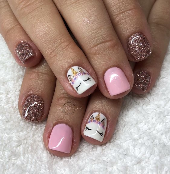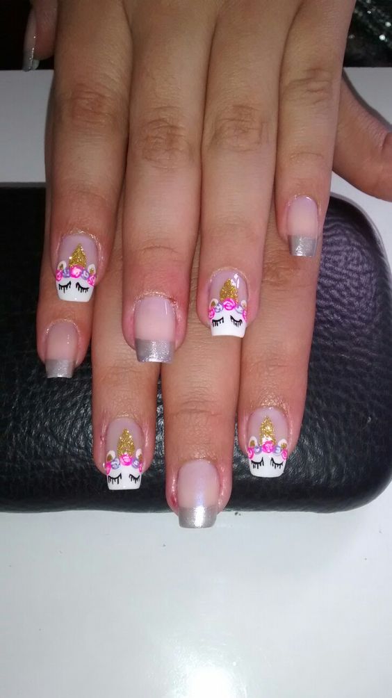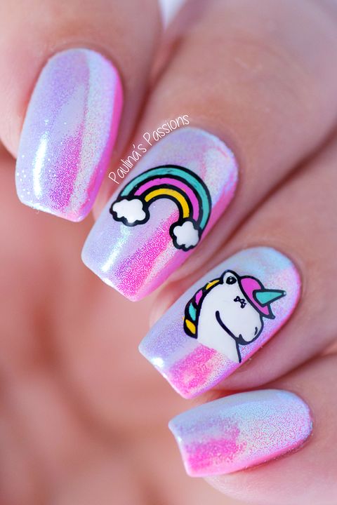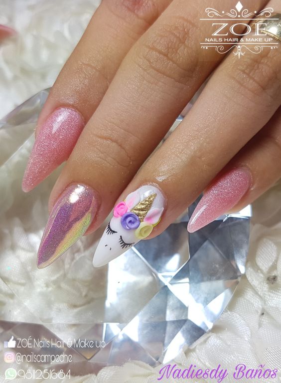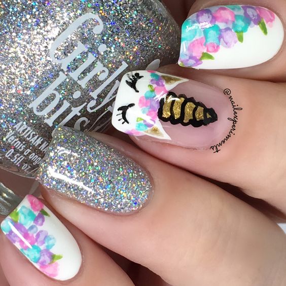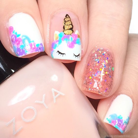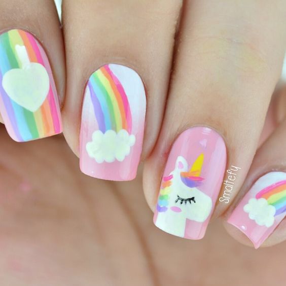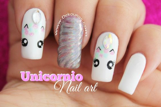 Si amas los unicornios entonces no puedes dejar de llevar en tus uñas este diseño acompañado de colores pastel, glitter y blanco. Por lo que te presentamos a continuación algunas ideas para que te inspires de ellas: