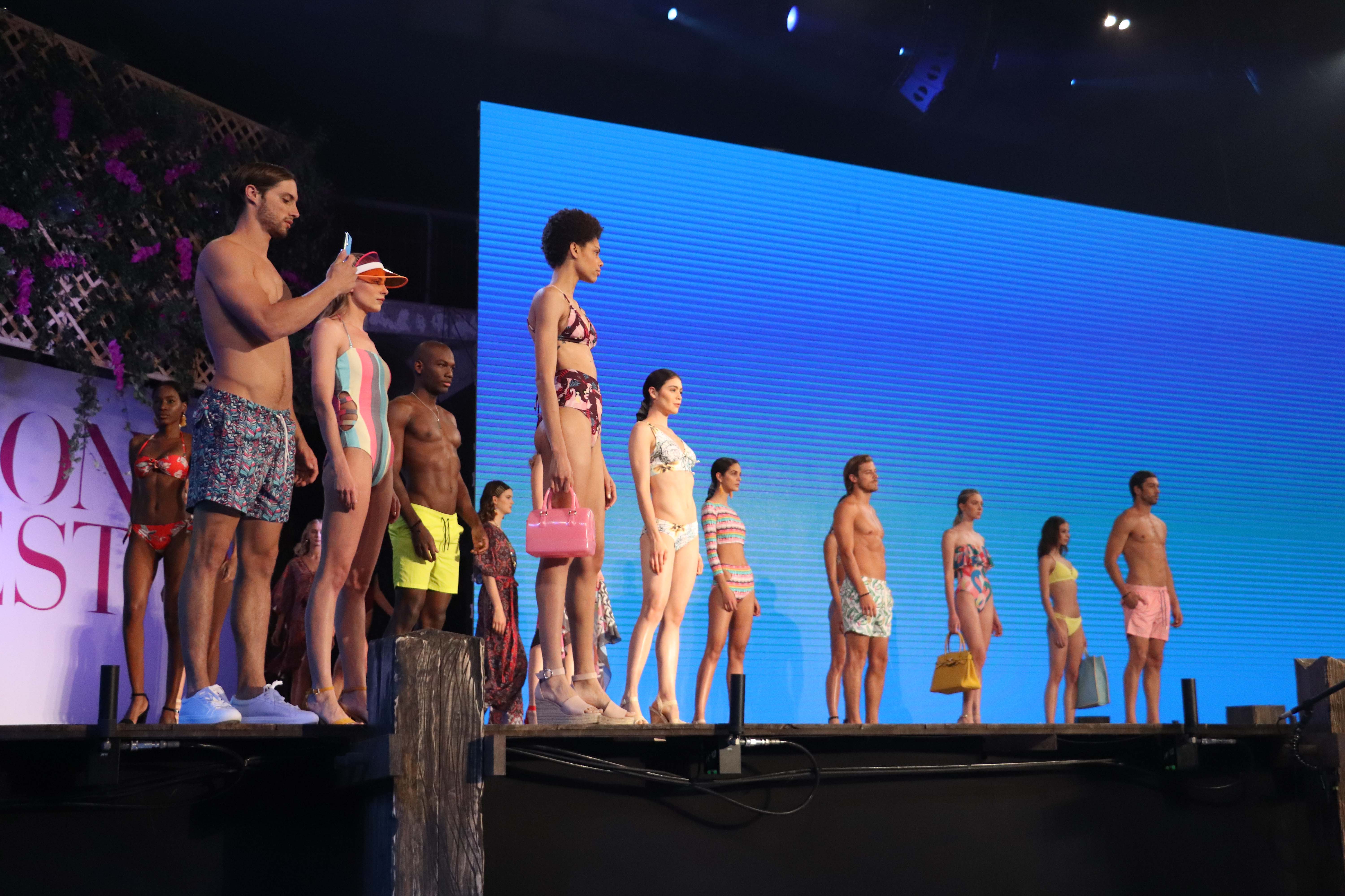Por el muelle desfiló la colección de trajes de baño, en donde destacaron los diseños con estampados florales, tanto en los trajes de una sola pieza como en los conjuntos. En cuanto a los trajes de baño para hombres, los estampados tribales y los colores vibrantes son los que destacaron.
