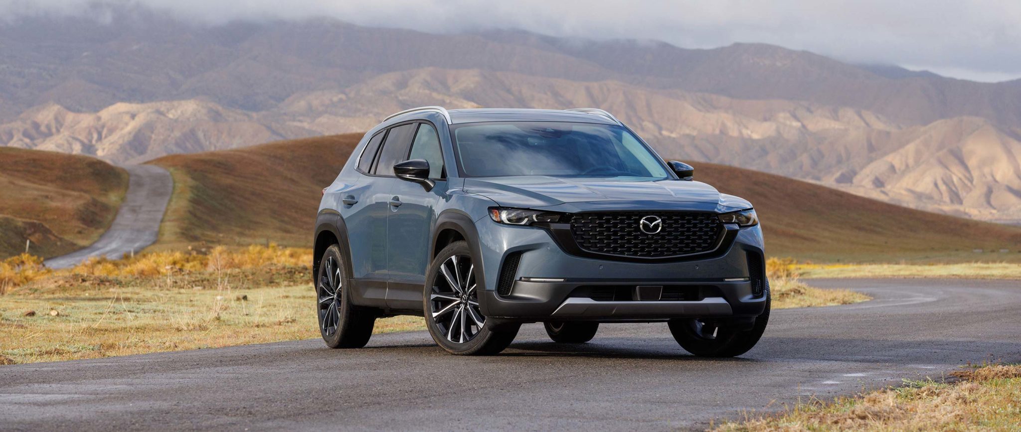 Podemos notar que no pierde el lenguaje estético de Mazda. Tiene un frente robusto y agresivo que se hace notar por dos grandes tomas de aire en los costados de la fascia, así como un chasis ensanchado y unos rines de 20 pulgadas.