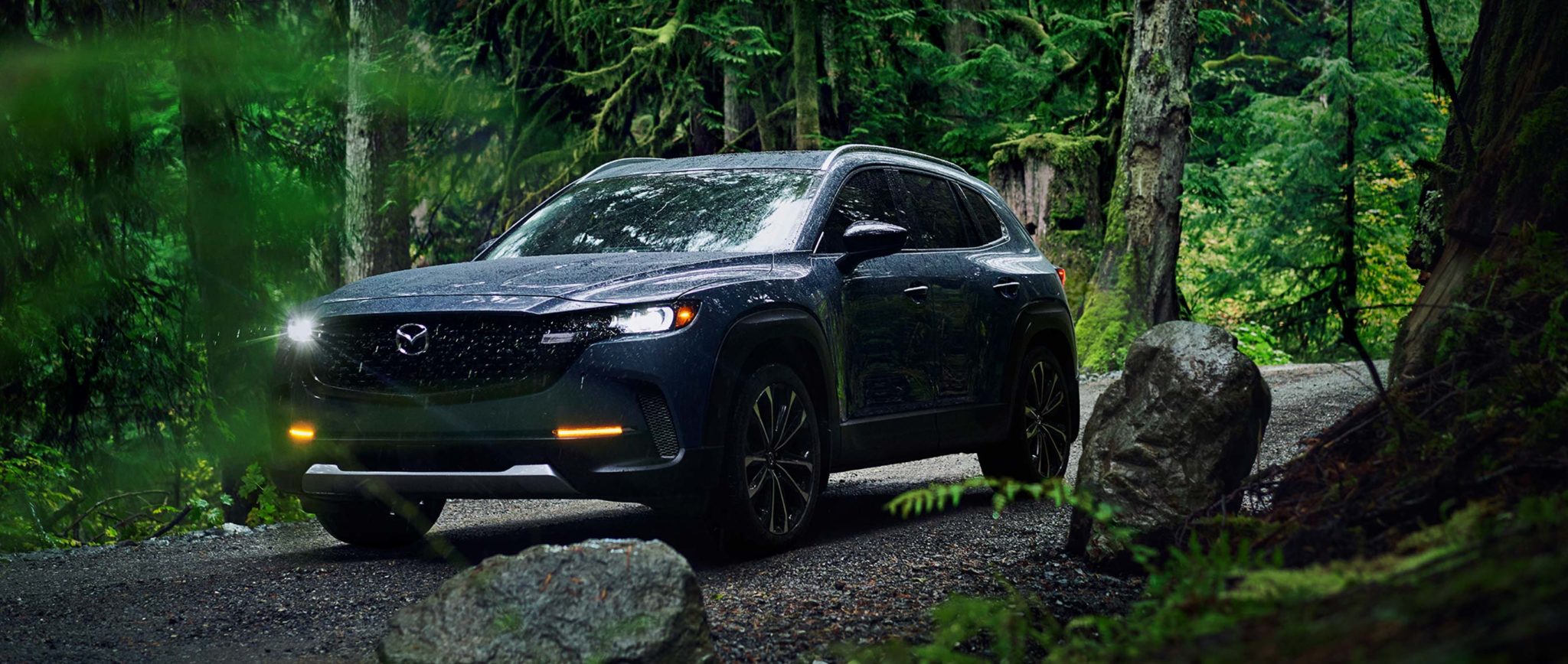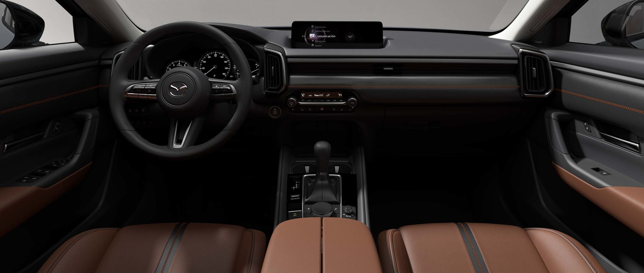 En su interior, la CX-50 ofrece un amplio espacio, mientras que la posición de manejo es cómoda en cualquier terreno, ya sea en ciudad o carretera.