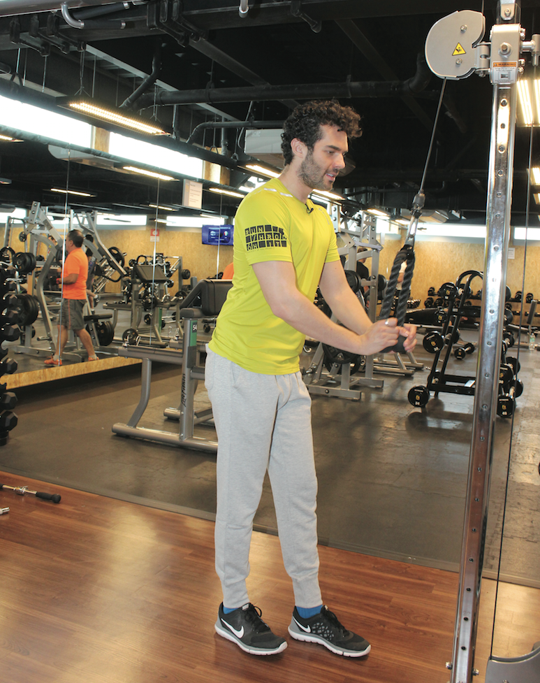 Antes de iniciar con su nueva rutina, Carlos hizo algunos ejercicios de cardio para calentar sus músculos y obtener el mejor resultado tanto en pecho como en espalda, zonas de su cuerpo que se propuso tonificar en las próximas semanas, por supuesto, bajo la supervisión de un asesor en entrenamiento físico, quien está al pendiente de su desarrollo y avance.
