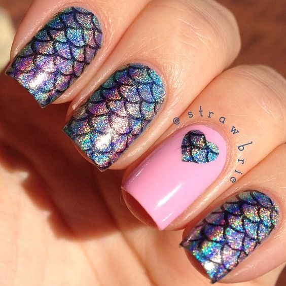 Si te encanta que tu nail art este lleno de glitter y diseño y aparte eres fanática de las sirenas, este nuevo manicure es el ideal para ti.