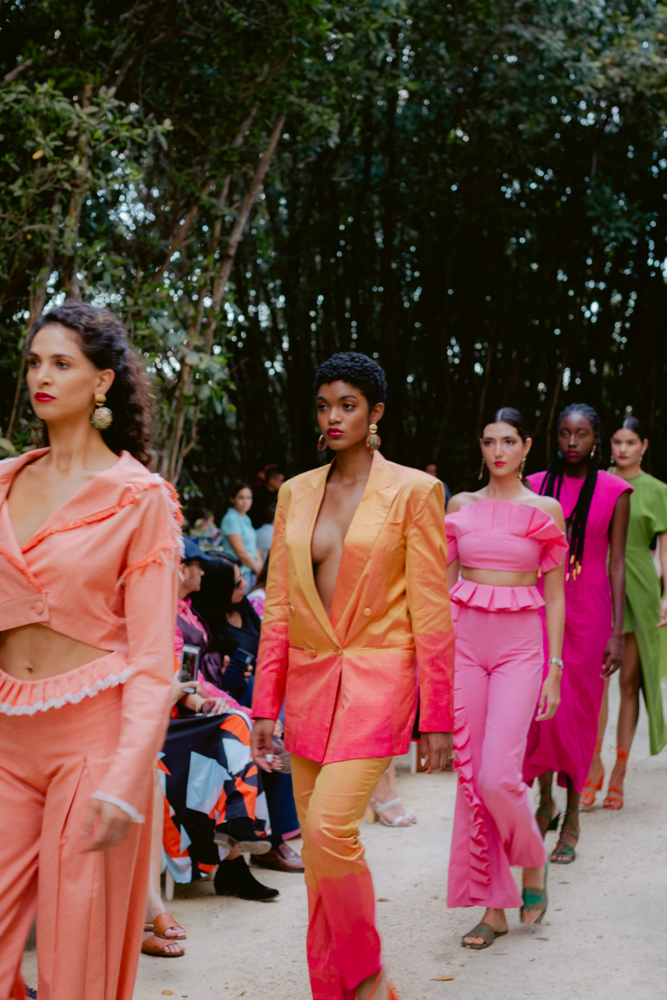 El primer escenario fue el área de manglar, donde se presentaron cuatro pasarelas de diseñadores latinoamericanos; la primera fue la del diseñador Germán Ruiz con su nueva colección VOLVER, la cual llamó la atención con su diversidad de texturas y colores en cada pieza.