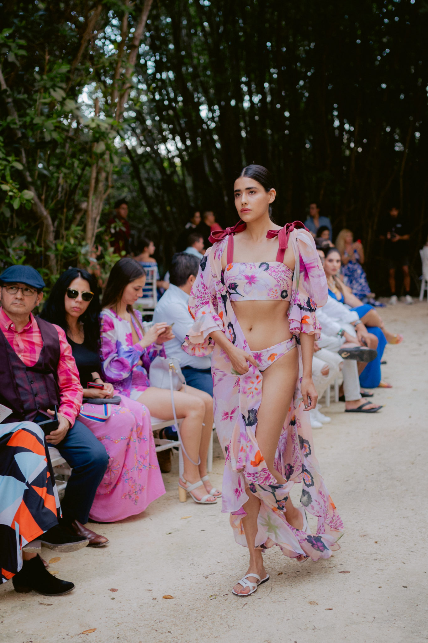 Dio inicio la diseñadora colombiana Daniella Batlle, quien mostró su colección Sea Bloom con una paleta de colores pastel, entre rosados, lilas y blancos, siguiendo con la presentación del diseñador Marcelo Chic, originario de Yucatán.