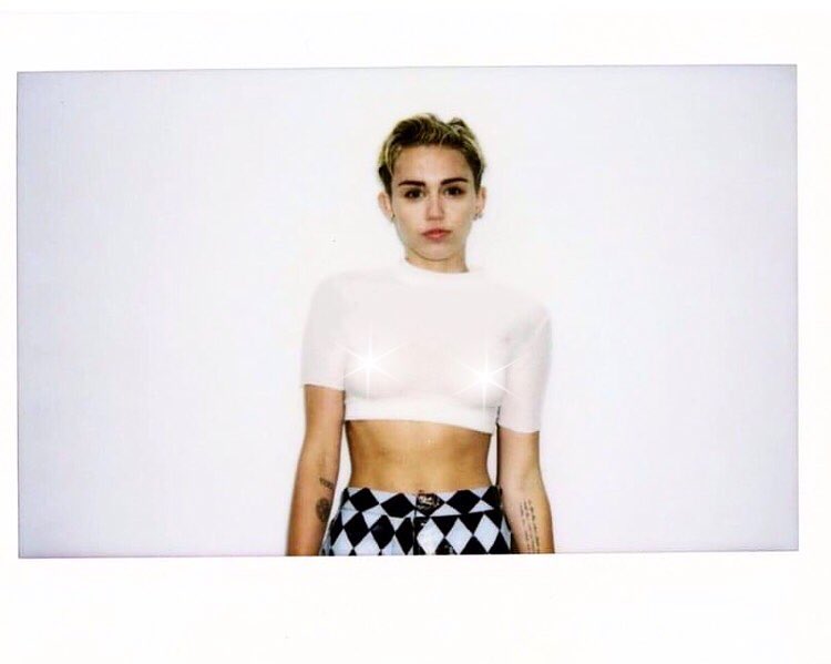 Con motivo del quinto aniversario de su exitoso álbum ‘Bangerz’, subió varias fotografías del recuerdo donde aparece en topless, poniendo emoticones para que no las remuevan.