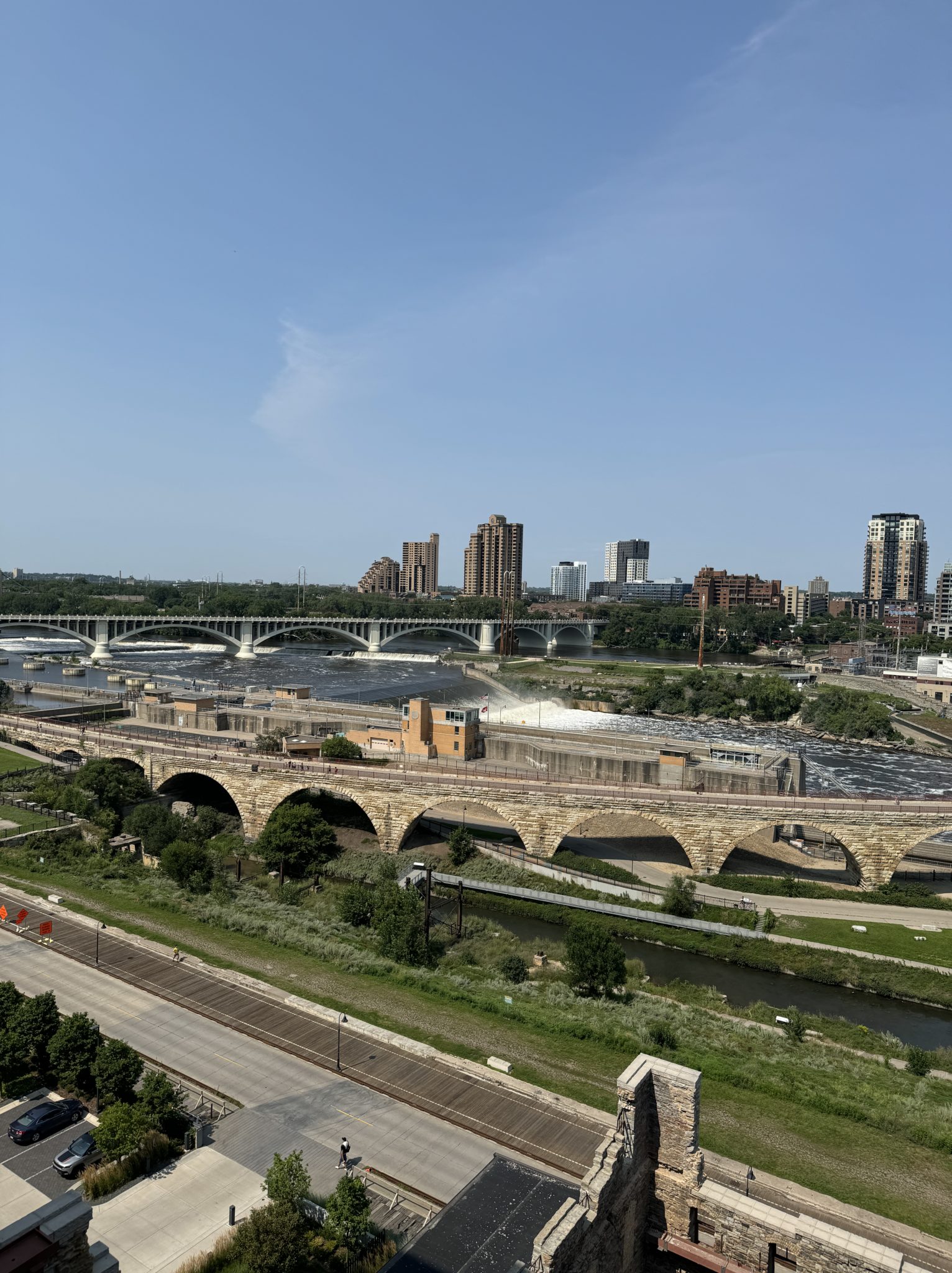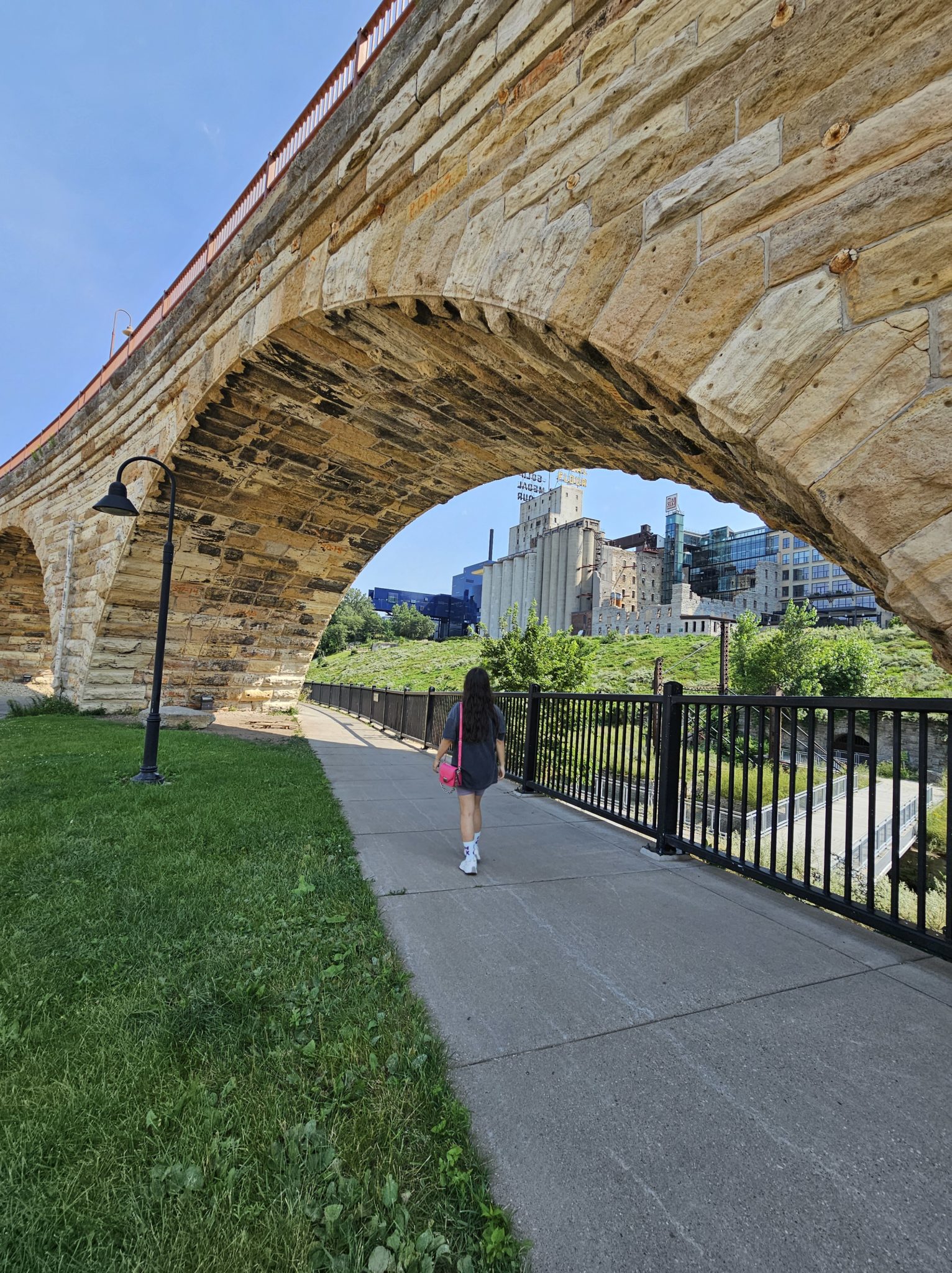 Al salir del museo, a tan sólo unos metros, caminamos por el clásico Stone Arch Bridge, un puente de piedra que ofrece vistas espectaculares al río Mississippi y al horizonte de la ciudad. La estructura fue construida en 1883. Te recomendamos recorrerlo lo más que puedas durante el atardecer en compañía de un helado, a un costado encontrarás un carrito de nieves.