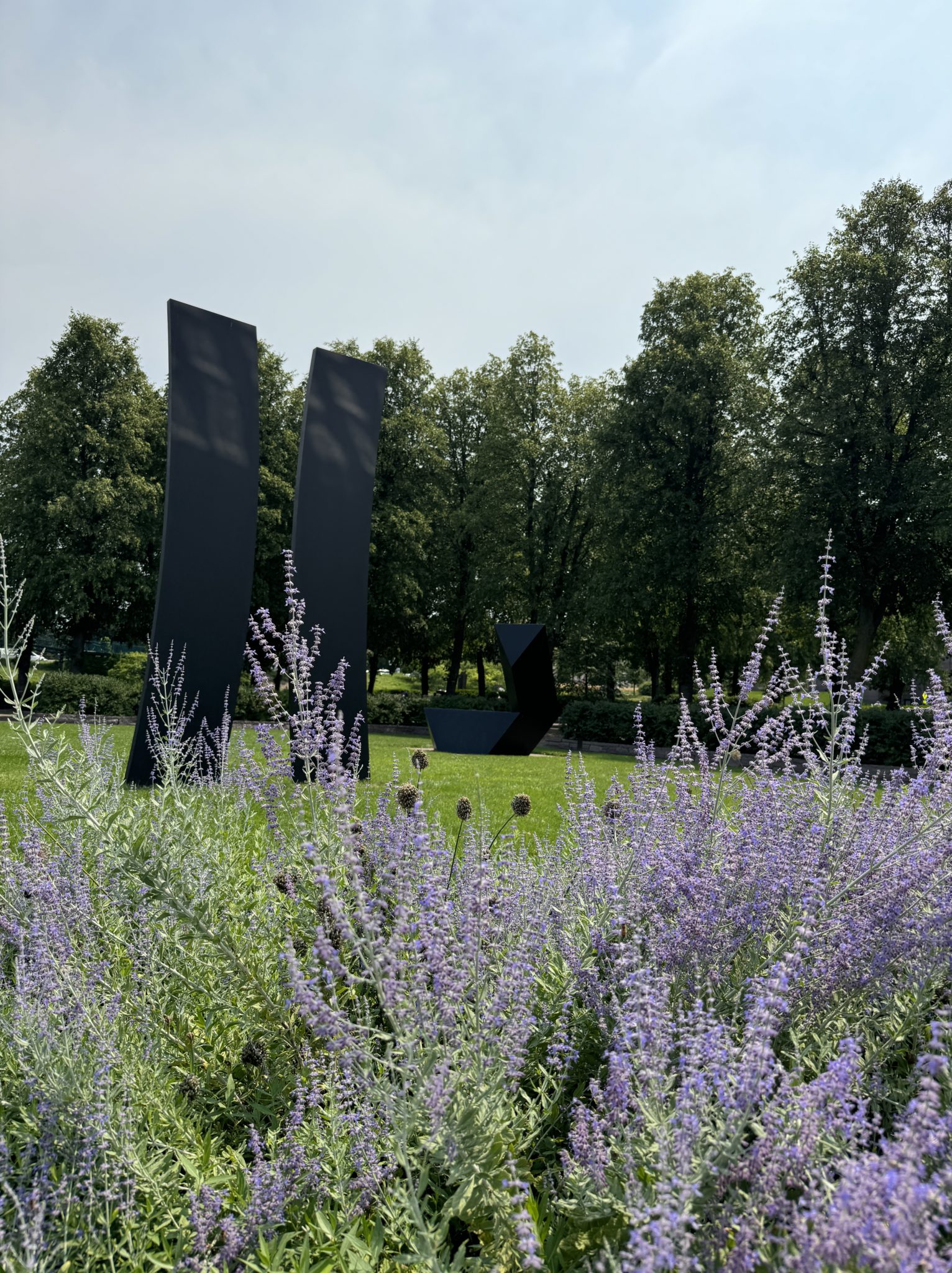 Para terminar nuestro recorrido hicimos una parada en el Minneapolis Sculpture Garden, un parque donde el arte y la naturaleza se encuentran. La famosa cuchara con cereza, junto con otras esculturas modernas, ofrece un espacio para reflexionar y admirar el ingenio artístico en un entorno verde.