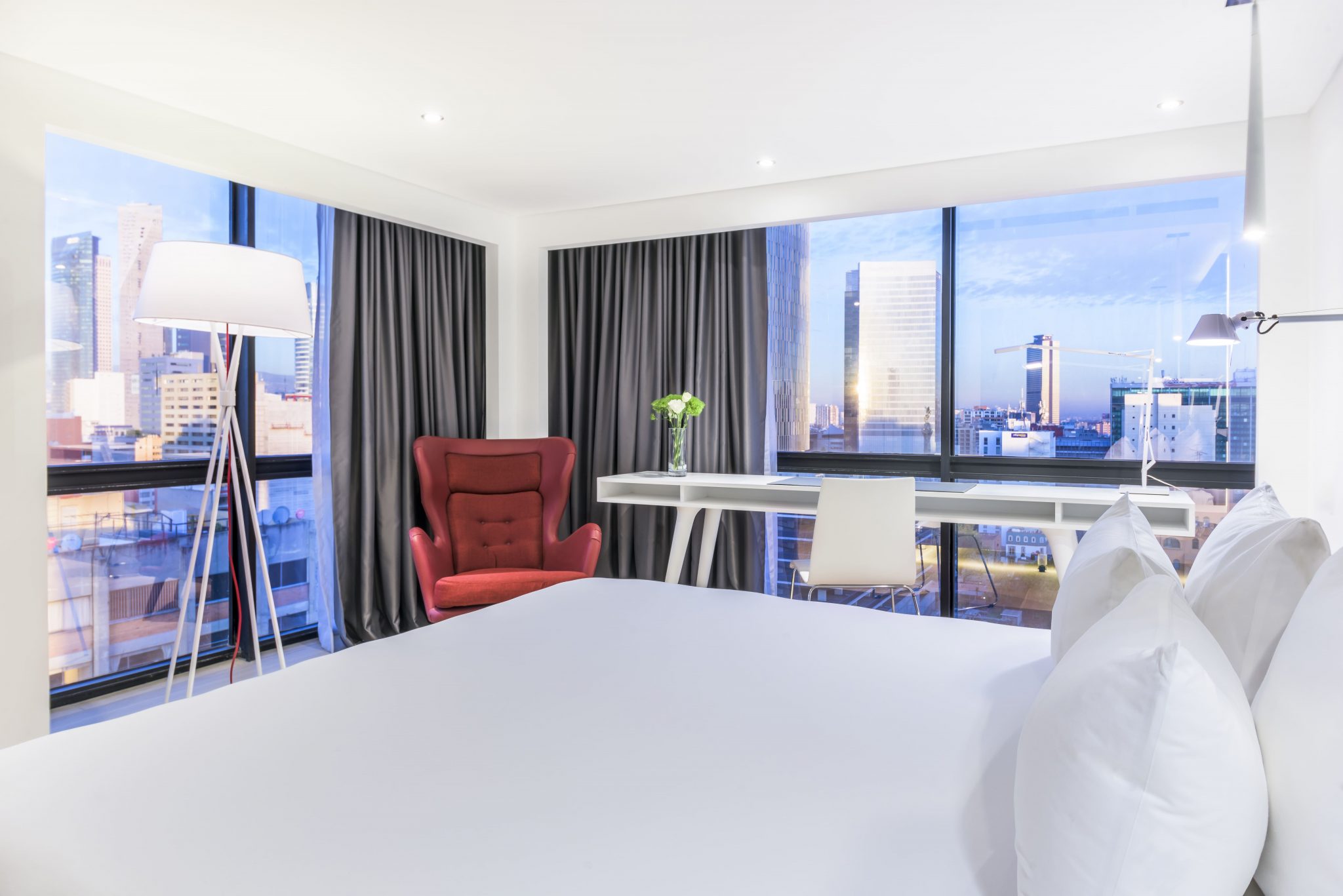 Este hotel de clase mundial, gracias a su ubicación, ofrece extraordinarias vistas de los rascacielos más importantes de la ciudad. Además, su concepto gastronómico de alta cocina internacional va muy de la mano con la oferta de la zona, ya que tiene opciones para todos los gustos. Dentro de la oferta del hotel se pueden encontrar unos deliciosos cortes de carnes, sándwiches, ensaladas y sopas, así como gran variedad de repostería, frutas, jugos recién hechos y huevos cocinados al momento; dentro de la carta hay platos fuertes destacados por su gran sabor y originalidad. Y si llevas a tu mejor amigo, no tienes de qué preocuparte, ya que es un hotel pet friendly.