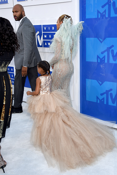 A pesar de que las dos iban increíblemente formales para una ceremonia de premios como los son los MTV, quien llamó más la atención fue Blue Ivy, pues con sólo cuatro años de edad, la pequeña usó un vestido de corte princesa diseñado por la especialista en alta costura infantil, Mischka Aoki, que incluía ondas y capas de tul, así como una blusa de oro metálico con aplicaciones en 3D cuyo precio fue de 10 mil 950 dólares (203 mil 893 pesos).