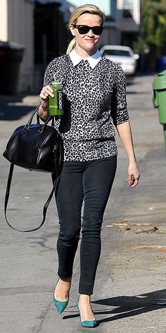 Si de preppy y chic se trata, Reese es toda una experta. La actriz siempre opta por coordinados, faldas con vuelo, zapatos de tacón y bolsas grandes.