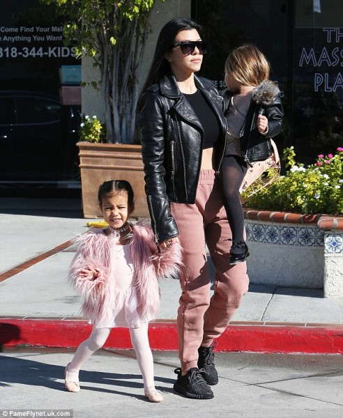 Ahora, al salir de su clase de ballet, North deslumbró a todos con su look al llevar un abrigo rosa metálico totalmente de fur. Además, lo combinó con un maxi collar de brillos.
