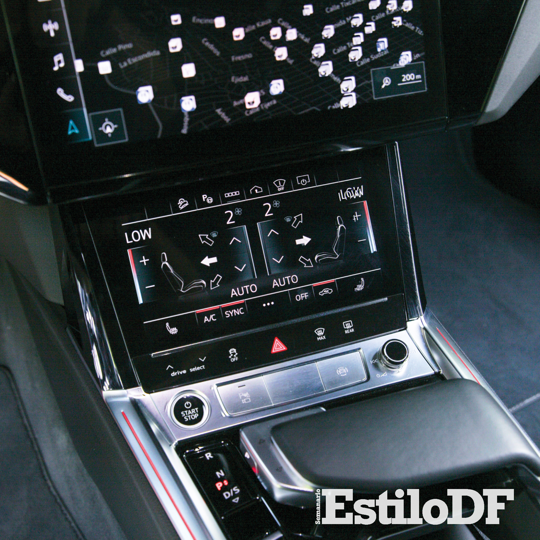Igual que todos los modelos de categoría superior de Audi, el e-tron Sportback también presenta el sistema MMI touch response con dos pantallas. Cuando se activa una función con el dedo, una respuesta táctil y acústica confirma la operación. Mediante la pantalla táctil superior de 30.7 centímetros (12.1 pulgadas), el conductor controla el infotainment, el teléfono, la navegación y los ajustes específicos e-tron. La pantalla inferior de 21.8 centímetros (8.6 pulgadas) se usa para introducir texto y llevar a cabo otras tareas, como las relativas al control del climatizador. La estructura del menú es lógica e intuitiva, similar a la de un smartphone actual; los gráficos son claros y concisos.