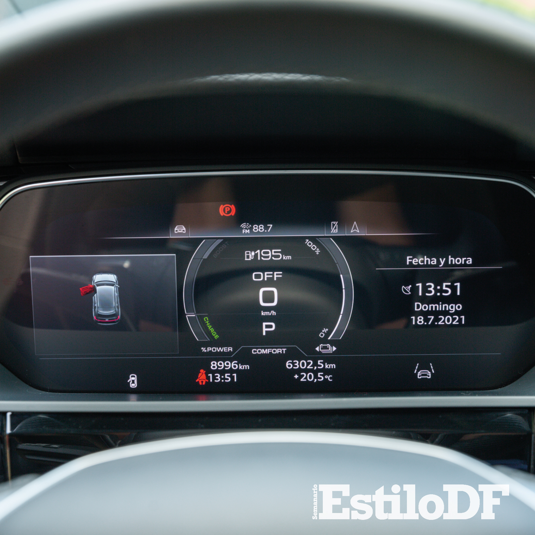 El equipamiento de serie del e-tron Sportback también incluye la instrumentación Audi virtual cockpit plus de 312 cm (12.3) pulgadas. Esta pantalla destaca por su resolución extremadamente alta de 1,920 x 720 píxeles y permite cambiar entre dos modos de vista mediante el botón ‘View’ del volante. Cuenta con un modo de visualización adicional, en el que el elemento protagonista es el medidor de potencia. Opcionalmente, es posible ampliar estas funciones con un Head-up display que proyecta información relevante en el parabrisas.