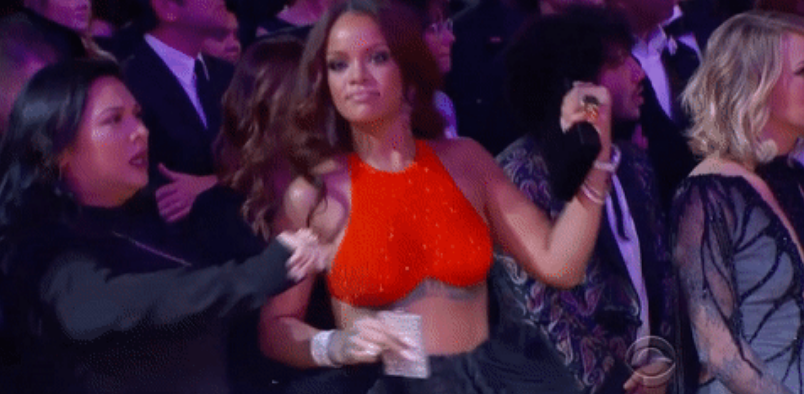Y no podía faltar Rihanna, quien para no aburrirse durante el evento, decidió llevar consigo una ánfora con un diseño impresionante de cristales, con la que se le vio bebiendo a ratos. Incluso, la compartió con una joven que la acompañaba, con quien no dejó de bailar durante los musicales.