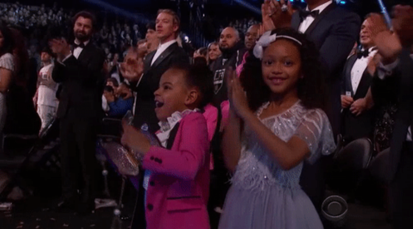 Si alguien robó miradas, fue la pequeña Blue Ivy Carter, quien mientras Beyoncé cantaba, no dejo de bailar y aplaudir desde las butacas al ritmo de los éxitos de su madre. Además, saludó amablemente a Nick Jonas.