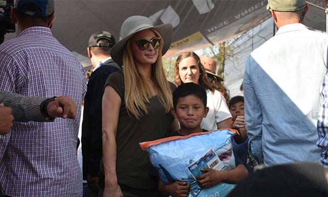 Paris sacó su lado más altruista al visitar Xochimilco, una de las zonas más afectadas por el terremoto del 19 de septiembre, y brindar ayuda a las familias.