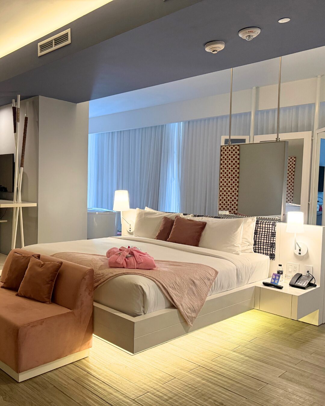 Desde el lobby, la energía cambia. El rosa aparece en guiños sutiles y en gestos atrevidos: luces que bañan el espacio, detalles que cuentan historias, cocteles que parecen piezas de diseño. Todo bajo la filosofía W: vivir intensamente, sentir profundamente y nunca pasar desapercibido.
