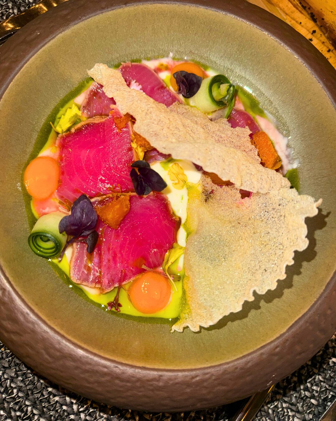 El tiradito con acentos florales, los ñoquis teñidos de betabel y un semifreddo etéreo de mascarpone y granada celebran un mismo mensaje: la belleza también puede ser consciente.