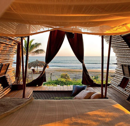 This is the front of our #Treehouse, constructed in palms ????as living piers raised 6 ft above the ground. Rest in the King bed facing the ???? or the daybed (located behind in a private lounge area) or gather all together in the floating floor hammock. See our website for rates and availability (link in bio). Accommodates 3. ???? #ecohotel #travelmexico Una publicación compartida por Playa Viva (@playaviva) el