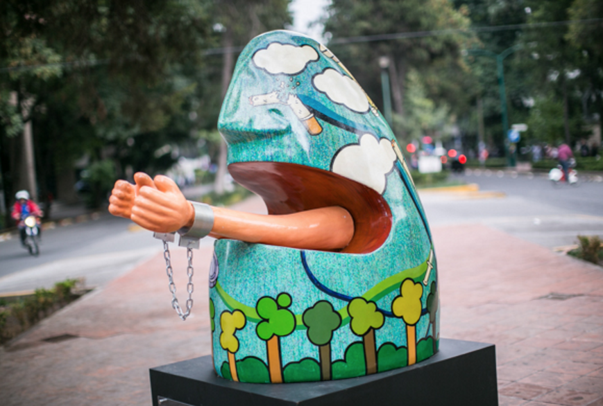 Es en al calle de Horario en la zona de Polanco donde se encuentra esta exposición de 20 piezas en forma de boca con actitud de “grito”, intervenidas por diferentes artistas plásticos donde el tema para plasmar eran: valores y derechos universales.