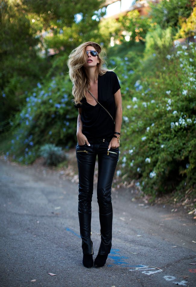Total black look: Aunque pienses que estos pantalones son sinónimo de rock o pueden quitar lo femenino, puedes llevar un look totalmente monocromático con todas las piezas negras y lograr un effortless chic look. Es perfecto para el clima y te da un toque súper neoyorquino.