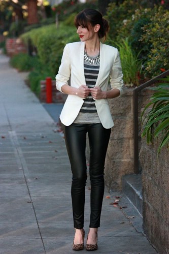 Con una blusa blanca: nuestra combinación favorita y la eterna clásica es el blanco y negro, llévalo con estos leather pants.