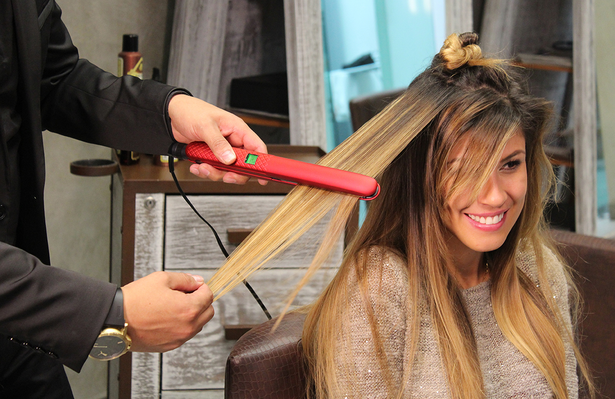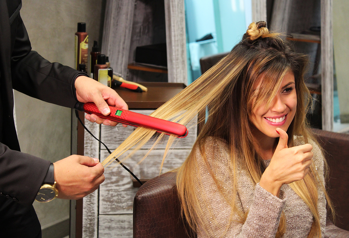 Tras un tratamiento con productos de Argán, la modelo observó cómo de manera rápida y en deslizamiento sutil de las placas, su cabello iba tornándose sedoso y manejable, sin necesidad de repetir la operación sobre el mismo mechón una y otra vez.