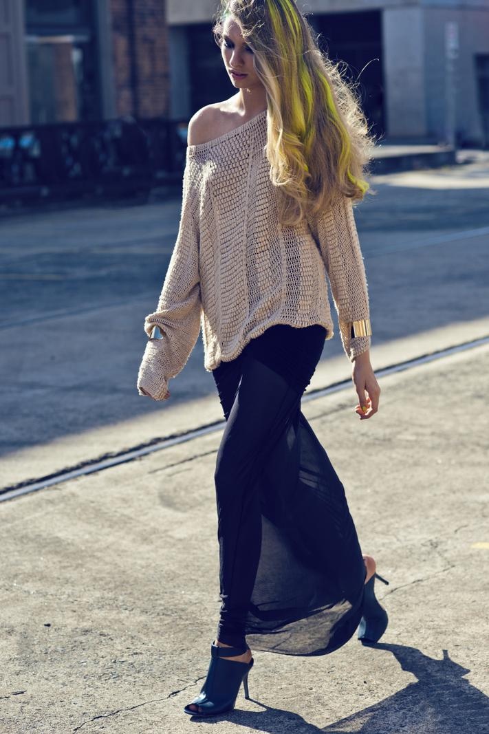 Este tipo de suéter es un básico que debes tener de inmediato en tu armario, pues lo puedes combinar con todo, leather leggins, boyfriend jeans, maxi faldas, hasta shorts. Sólo recuerda que como te da una ilusión over size, no recargues el outfit usando accesorios.