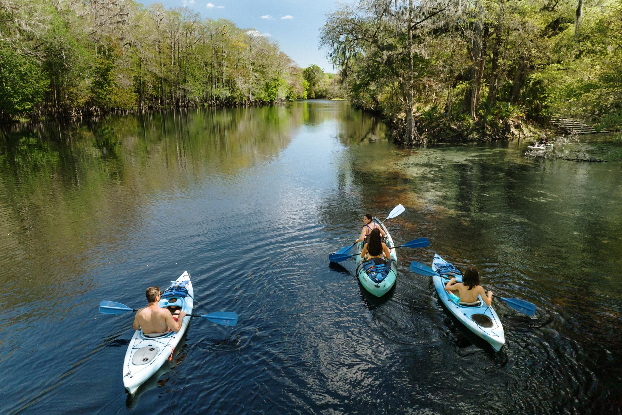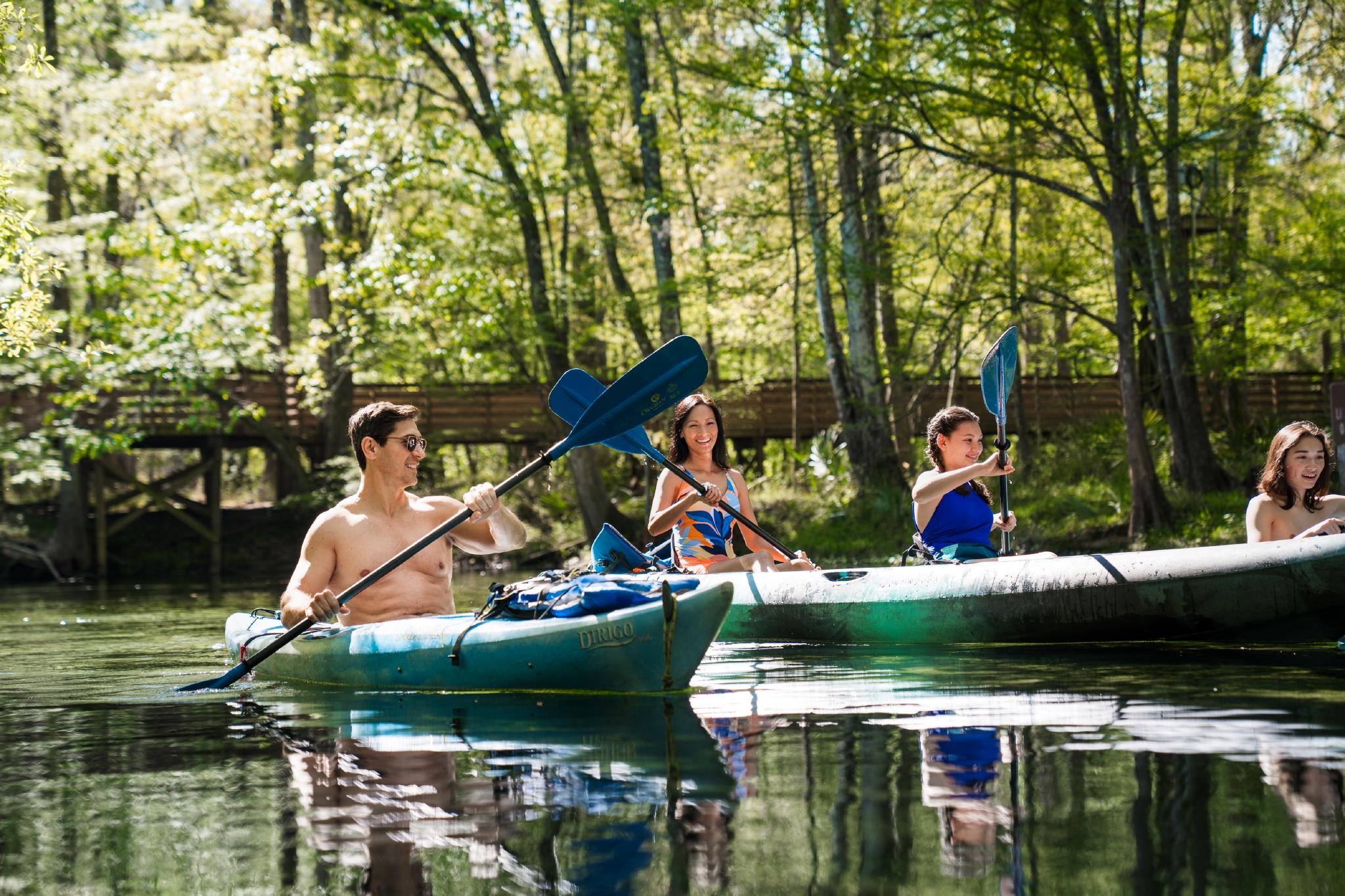 Para los amantes del agua, una de las mejores actividades en la zona es remar en kayak o paddleboard en Poe Springs Park. Este parque, ubicado a unos 30 minutos de Gainesville, ofrece aguas cristalinas y un entorno natural impresionante. Puedes alquilar un kayak o llevar el tuyo y recorrer el río Santa Fe mientras disfrutas del paisaje, la vida silvestre y la tranquilidad del lugar. Además, el parque cuenta con áreas para picnic y senderos para caminar, por lo que puedes hacer de tu visita un día completo de contacto con la naturaleza.