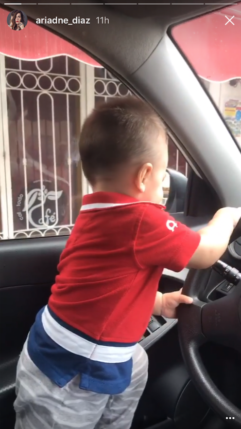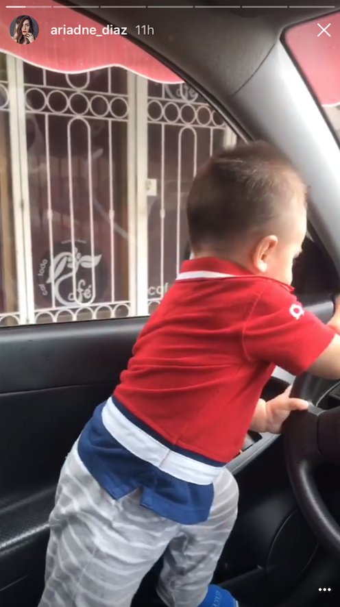 A través de Instagram Stories, la actriz compartió imágenes en las que se observa a su hijo intentado encender un auto en alto total. Como era de esperarse, esto enterneció a sus seguidores.