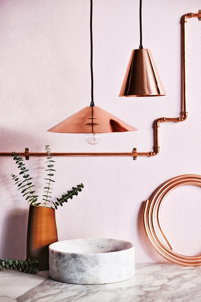 No todo lo que brilla es oro, hoy en día es el cobre es el metal que viene con mas fuerza. Ese color rosado que tiene combina increíble con tonos neutros. A mi me encanta meterlo en lámparas, llaves, jaladeras de cajones, manijas de puertas, vasijas, etc… Úsenlo con moderación pero no pueden dejar de tener algo de este metal en sus espacios.