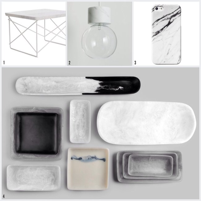 Esta piedra siempre a sido muy popular para decorar espacios, y parece que este año no va a ser diferente, lo interesante es cuando lo encontramos mezclado con otros materiales como madera, metal o piel, o cuando lo vemos en contraste con blancos y negros. Inspirado en este material tan sofisticado y bonito muchos diseñadores están creando cosas inesperadas. Estoy segura que este 2015 vamos a ver mucho mas de esta piedra.