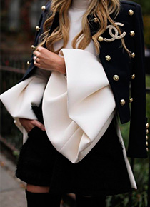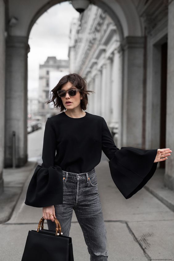Ya sea en vestidos, blusas o chamarras, este corte será el protagonista del año. Para darle un toque chic, te recomendamos usar una blusa blanca con mangas XL combinada con unos «boyfriend» jeans y así robar todas las miradas, ya sea en la escuela, una date y, si se puede, en la oficina.