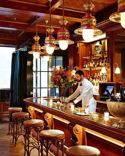 La decoración del lugar es una fiel copia al estilo de la marca, clásica y acogedora. Los detalles en piel oscura , un bar de latón y un panel de madera oscura crea una atmosfera súper elegante y classy.